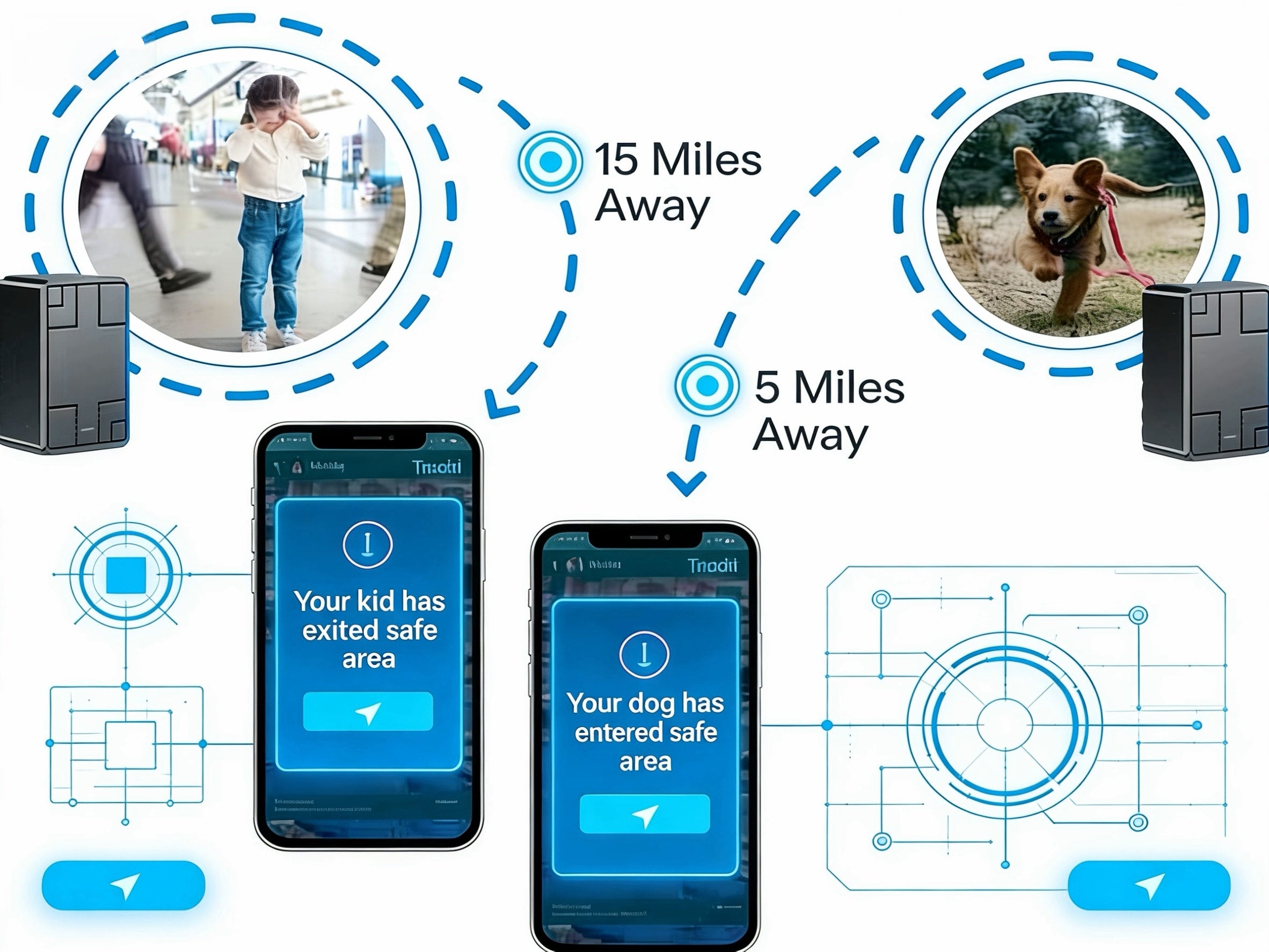 Get automatic smart alerts when your children, pets, elderly, loved ones, or your valuables are crossing out of a pre-selected fenced area.